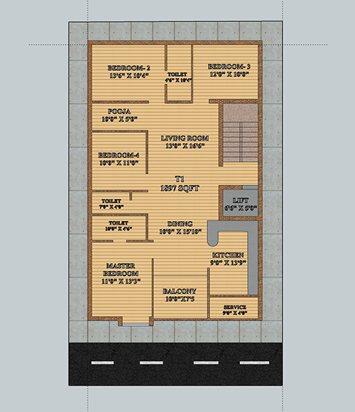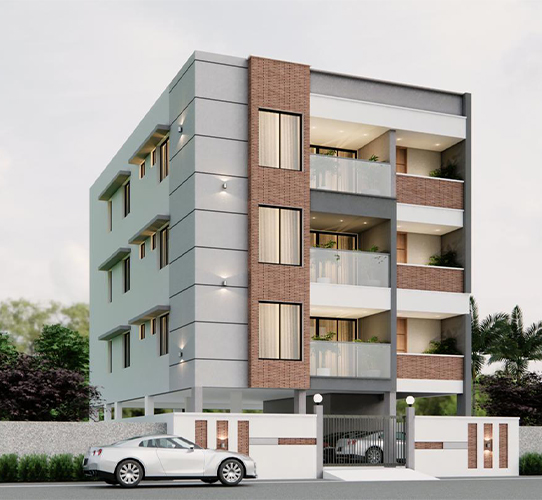 - Covered Car Parking in Stilt floor with three floors.